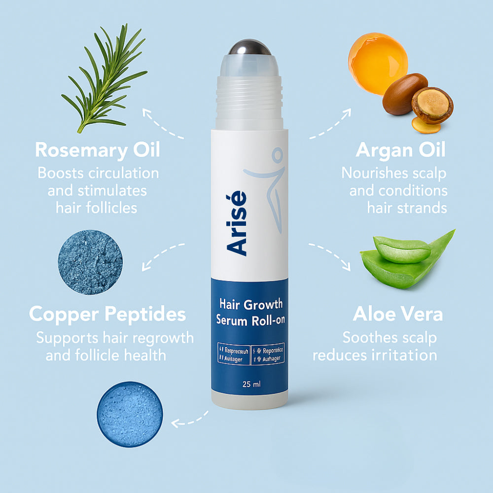 Our Hair Growth Serum Roll-on delivers targeted nutrients straight to the root where it matters most. Powered by rosemary oil, copper peptides, biotin, and plant-based extracts, this serum fights back against thinning, breakage, and scalp fatigue.